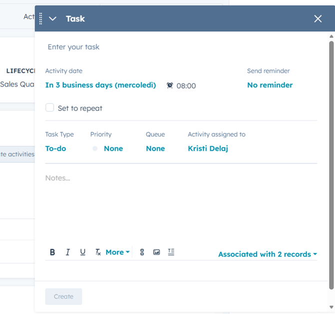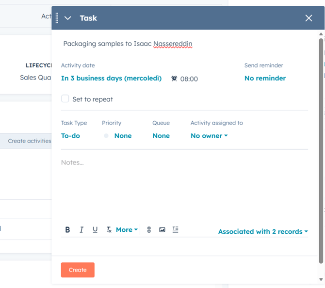 Click Create task. A window will appear where you can create and customize the task.
