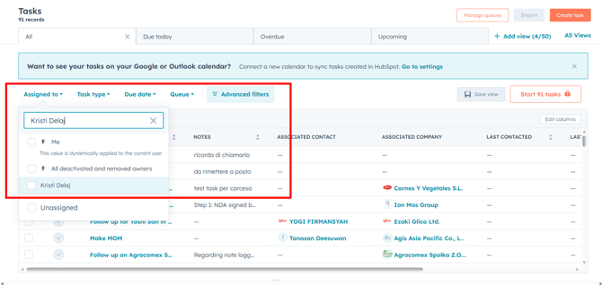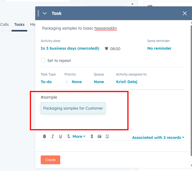 HubSpot will automatically insert the prepared template text into the task.